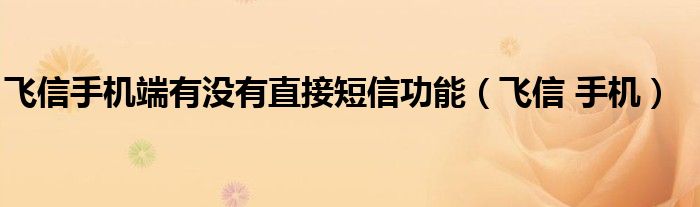 飞信手机端有没有直接短信功能(飞信 手机)