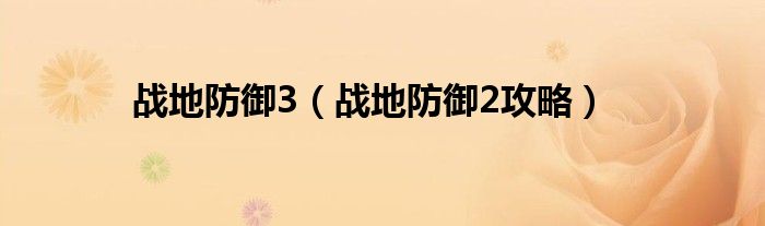 战地防御3(战地防御2攻略)