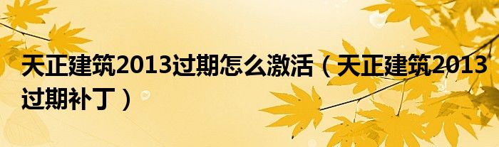 天正建筑2013过期怎么激活,天正建筑2013过期补丁这个很多人还不知道,小飞来为大家解答以上的问题。现在让我们一起来看看吧!