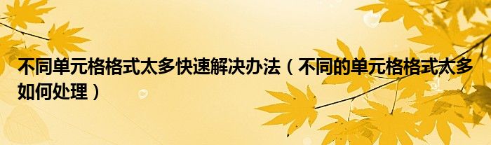 关于不同单元格格式太多快速解决办法,不同的单元格格式太多如何处理这个很多人还不知道,今天菲菲来为大家解答以上的问题,现在让我们一起来看看吧!