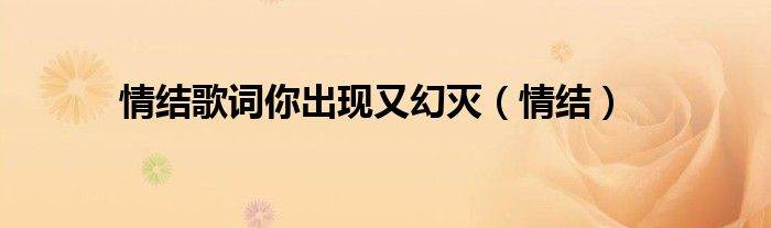关于情结歌词你出现又幻灭,情结这个很多人还不知道,今天菲菲来为大家解答以上的问题,现在让我们一起来看看吧!