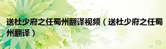 送杜少府之任蜀州翻译视频,送杜少府之任蜀州翻译这个很多人还不知道,小飞来为大家解答以上的问题。现在让我们一起来看看吧!