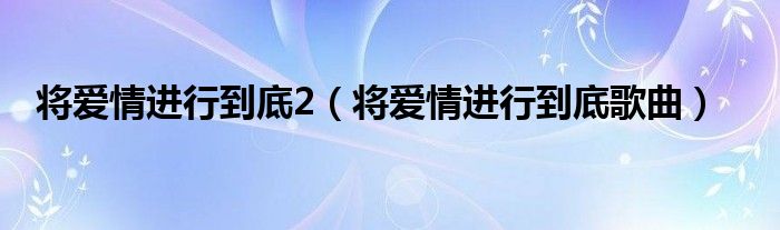 将爱情进行到底2,将爱情进行到底歌曲这个很多人还不知道,小飞来为大家解答以上的问题。现在让我们一起来看看吧!