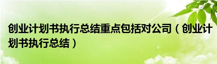 关于创业计划书执行总结重点包括对公司,创业计划书执行总结这个很多人还不知道,今天菲菲来为大家解答以上的问题,现在让我们一起来看看吧!