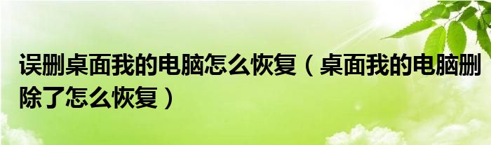 误删桌面我的电脑怎么恢复(桌面我的电脑删除了怎么恢复)