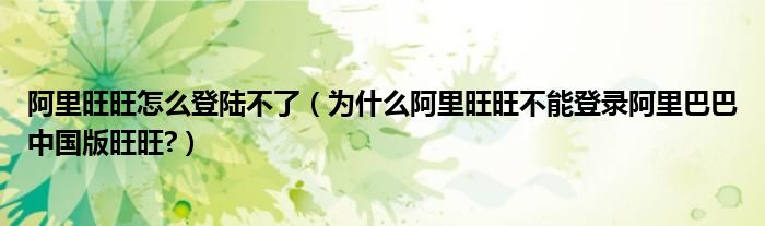 大家好,今天小悦来为大家解答以上问题。阿里旺旺怎么登陆不了,为什么阿里旺旺不能登录阿里巴巴中国版旺旺?很多人还不知道,现在让我们一起来看看吧!