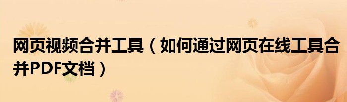 大家好,今天小悦来为大家解答以上问题。网页视频合并工具,如何通过网页在线工具合并PDF文档很多人还不知道,现在让我们一起来看看吧!