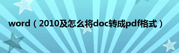 大家好,今天小悦来为大家解答以上问题。word,2010及怎么将doc转成pdf格式很多人还不知道,现在让我们一起来看看吧!