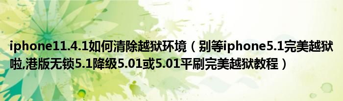 iphone11.4.1如何清除越狱环境(别等iphone5.1完美越狱啦,港版无锁5.1降级5.01或5.01平刷完美越狱教程)