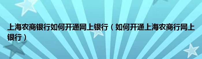 上海农商银行如何开通网上银行(如何开通上海农商行网上银行)