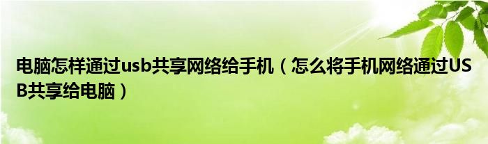 电脑怎样通过usb共享网络给手机(怎么将手机网络通过USB共享给电脑)