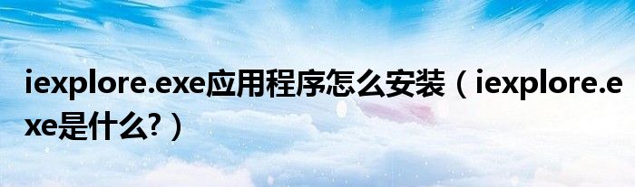 大家好,小太来为大家解答以上问题。iexplore.exe应用程序怎么安装,iexplore.exe是什么?很多人还不知道,现在让我们一起来看看吧!