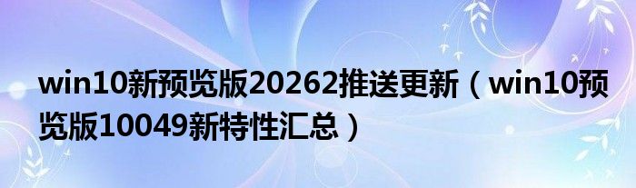 大家好,小太来为大家解答以上问题。win10新预览版20262推送更新,win10预览版10049新特性汇总很多人还不知道,现在让我们一起来看看吧!
