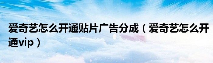 大家好,小飞来为大家解答以上问题,爱奇艺怎么开通贴片广告分成,爱奇艺怎么开通vip很多人还不知道,现在让我们一起来看看吧!