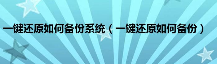 大家好,小飞来为大家解答以上问题,一键还原如何备份系统,一键还原如何备份很多人还不知道,现在让我们一起来看看吧!