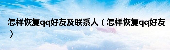 怎样恢复qq好友及联系人(怎样恢复qq好友)