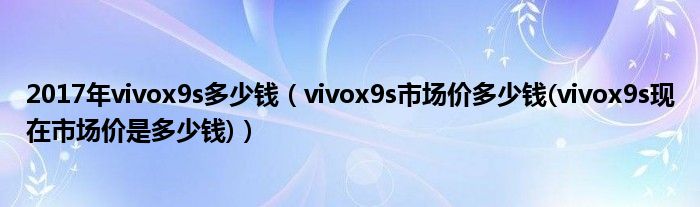 2017年vivox9s多少钱(vivox9s市场价多少钱(vivox9s现在市场价是多少钱))
