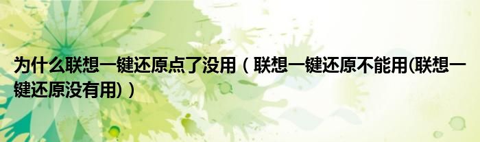 为什么联想一键还原点了没用(联想一键还原不能用(联想一键还原没有用))