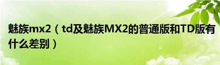 3,魅族mx2 td版是什么意思:  魅族MX2 TD版的网络模式是GSM/TD-SCDMA,魅族MX2手机的网络模式是GSM/WCDMA,区别就是TD版支持移动3G网络,普通版本支持联通3G网络。