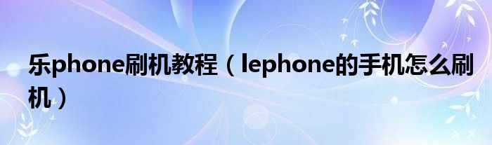 大家好,小常来为大家解答以上问题。乐phone刷机教程,lephone的手机怎么刷机很多人还不知道,现在让我们一起来看看吧!