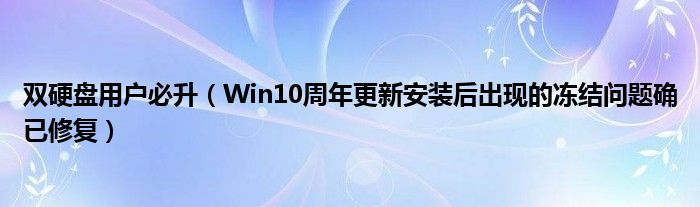 大家好,今天小悦来为大家解答以上问题。双硬盘用户必升,Win10周年更新安装后出现的冻结问题确已修复很多人还不知道,现在让我们一起来看看吧!