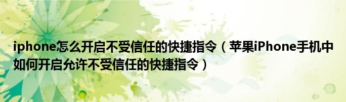 大家好,今天小悦来为大家解答以上问题。iphone怎么开启不受信任的快捷指令,苹果iPhone手机中如何开启允许不受信任的快捷指令很多人还不知道,现在让我们一起来看看吧!