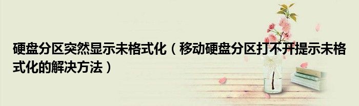 大家好,今天小悦来为大家解答以上问题。硬盘分区突然显示未格式化,移动硬盘分区打不开提示未格式化的解决方法很多人还不知道,现在让我们一起来看看吧!