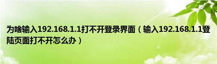 大家好,今天小悦来为大家解答以上问题。为啥输入192.168.1.1打不开登录界面,输入192.168.1.1登陆页面打不开怎么办很多人还不知道,现在让我们一起来看看吧!