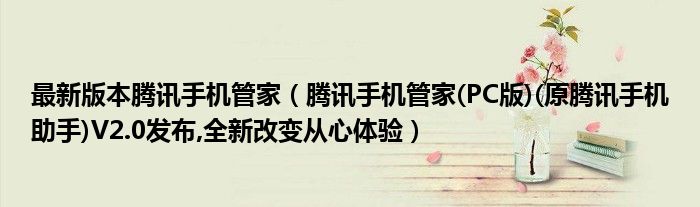 最新版本腾讯手机管家(腾讯手机管家(PC版)(原腾讯手机助手)V2.0发布,全新改变从心体验)