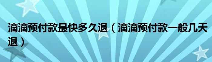 大家好,跳跳为你解答以上问题。滴滴预付款最快多久退,滴滴预付款一般几天退这个问题很多人还不知道,现在让我们一起来看看吧!