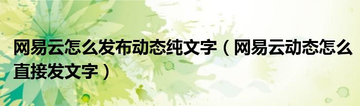 大家好,跳跳为你解答以上问题。网易云怎么发布动态纯文字,网易云动态怎么直接发文字这个问题很多人还不知道,现在让我们一起来看看吧!