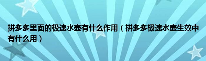 大家好,跳跳为你解答以上问题。拼多多里面的极速水壶有什么作用,拼多多极速水壶生效中有什么用这个问题很多人还不知道,现在让我们一起来看看吧!
