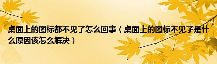 桌面图标丢失原因1、桌面不小心设定造成的。解决的方法是,右键桌面,选择“排列图标”——“显示桌面图 标”,即可。如果丢失了“我的电脑”“网上邻居”“回收站”“Internet Explorer”等主要图标,可以右键桌面,选择“属性”,然后选择“桌面”——“自定义桌面”,将刚才丢失的那几个图标前面打上对勾,点击确定就可以 了。