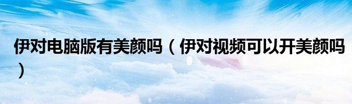 大家好,跳跳为你解答以上问题。伊对电脑版有美颜吗,伊对视频可以开美颜吗这个问题很多人还不知道,现在让我们一起来看看吧!