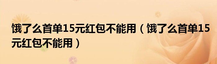 大家好,跳跳为你解答以上问题。饿了么首单15元红包不能用,饿了么首单15元红包不能用这个问题很多人还不知道,现在让我们一起来看看吧!