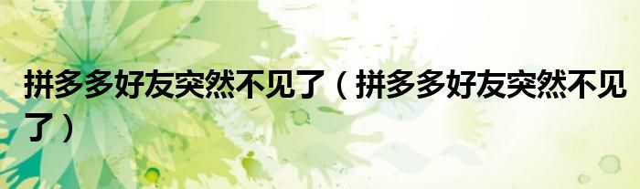大家好,跳跳为你解答以上问题。拼多多好友突然不见了,拼多多好友突然不见了这个问题很多人还不知道,现在让我们一起来看看吧!