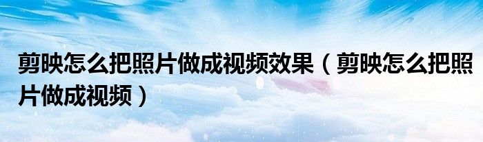 大家好,跳跳为你解答以上问题。剪映怎么把照片做成视频效果,剪映怎么把照片做成视频这个问题很多人还不知道,现在让我们一起来看看吧!