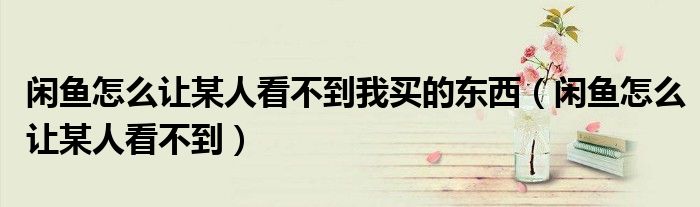 大家好,跳跳为你解答以上问题。闲鱼怎么让某人看不到我买的东西,闲鱼怎么让某人看不到这个问题很多人还不知道,现在让我们一起来看看吧!