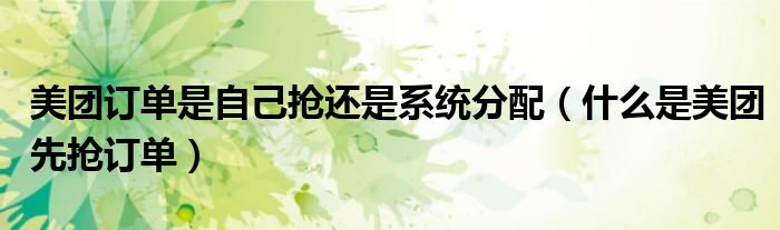 大家好,跳跳为你解答以上问题。美团订单是自己抢还是系统分配,什么是美团先抢订单这个问题很多人还不知道,现在让我们一起来看看吧!