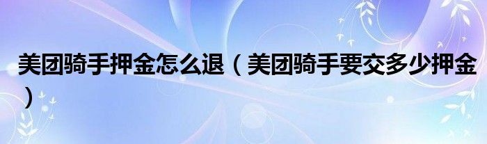 大家好,跳跳为你解答以上问题。美团骑手押金怎么退,美团骑手要交多少押金这个问题很多人还不知道,现在让我们一起来看看吧!