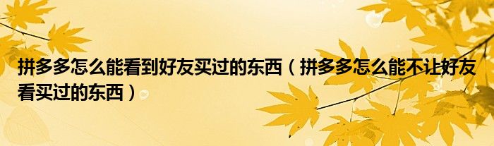 大家好,跳跳为你解答以上问题。拼多多怎么能看到好友买过的东西,拼多多怎么能不让好友看买过的东西这个问题很多人还不知道,现在让我们一起来看看吧!
