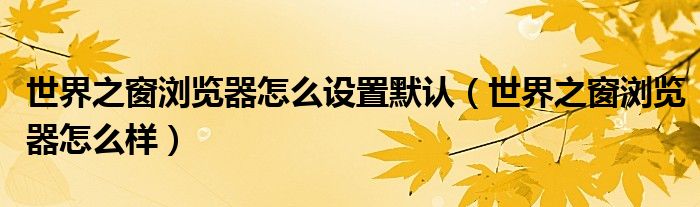 大家好,慧慧来为大家解答以上问题,世界之窗浏览器怎么设置默认,世界之窗浏览器怎么样很多人还不知道,现在让我们一起来看看吧!
