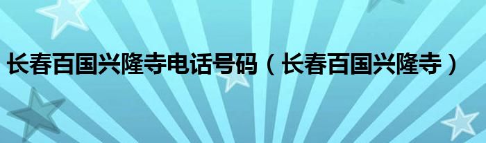 关于长春百国兴隆寺电话号码,长春百国兴隆寺这个很多人还不知道,今天菲菲来为大家解答以上的问题,现在让我们一起来看看吧!