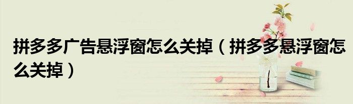 大家好,跳跳为你解答以上问题。拼多多广告悬浮窗怎么关掉,拼多多悬浮窗怎么关掉这个问题很多人还不知道,现在让我们一起来看看吧!