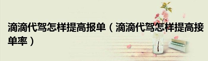 滴滴代驾怎样提高报单(滴滴代驾怎样提高接单率)