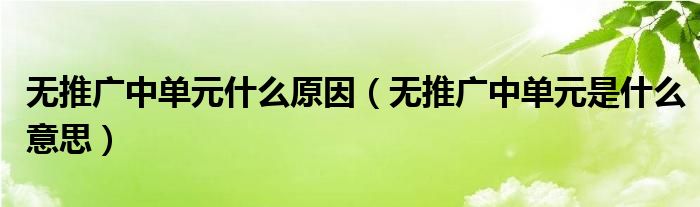 无推广中单元什么原因(无推广中单元是什么意思)