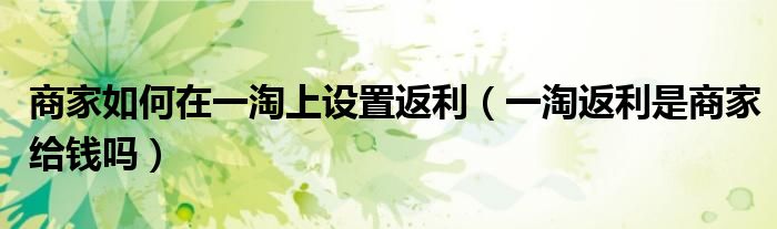 商家如何在一淘上设置返利(一淘返利是商家给钱吗)