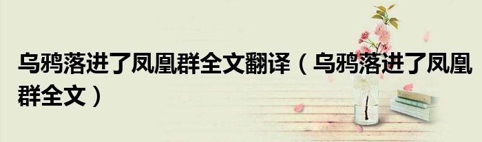 大家好,小晋来为大家解答以下问题,关于乌鸦落进了凤凰群全文翻译,乌鸦落进了凤凰群全文很多人还不知道,今天让我们一起来看看吧!