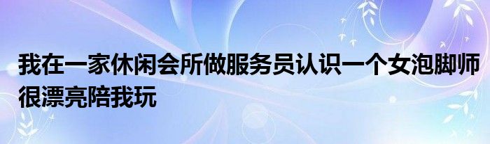 关于我在一家休闲会所做服务员认识一个女泡脚师很漂亮陪我玩这个很多人还不知道,今天菲菲来为大家解答以上的问题,现在让我们一起来看看吧!