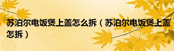 关于苏泊尔电饭煲上盖怎么拆,苏泊尔电饭煲上盖怎拆这个很多人还不知道,今天菲菲来为大家解答以上的问题,现在让我们一起来看看吧!